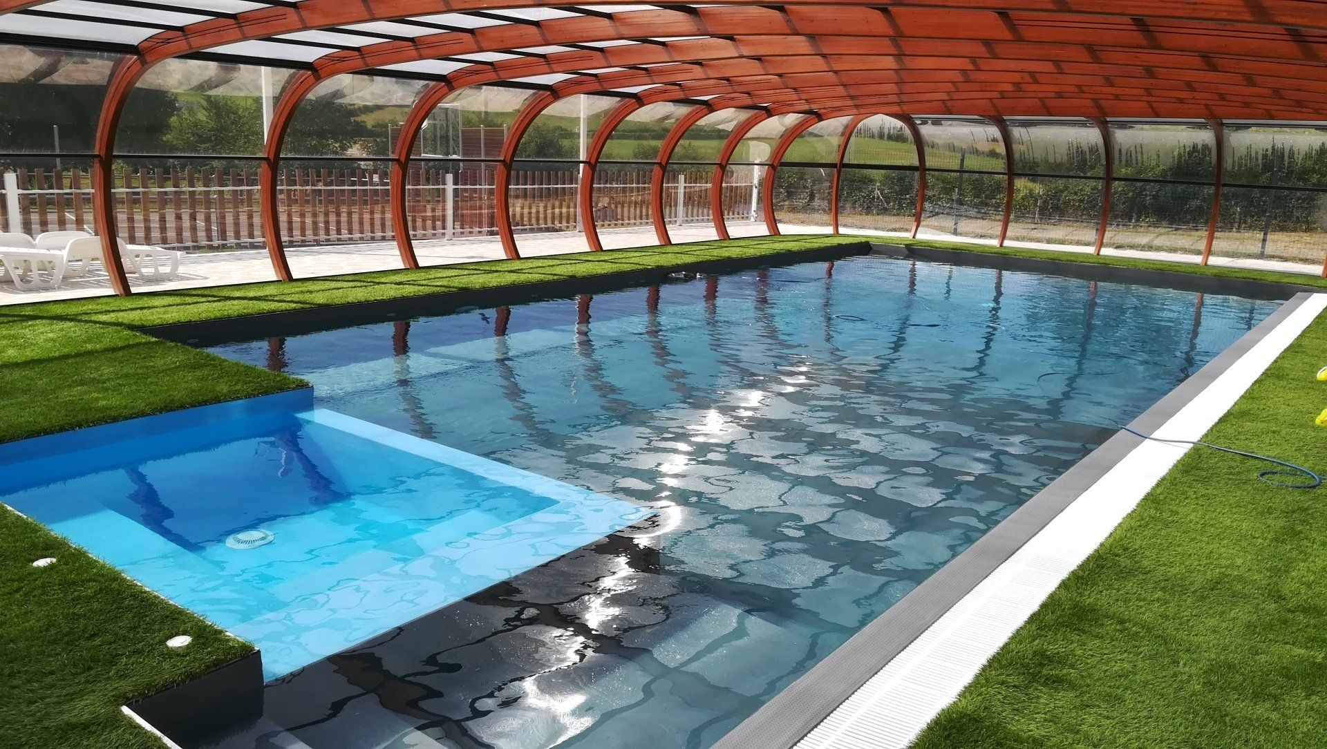 Bel ensemble immobilier de plain-pied, de 1000m² de surface, avec piscine, City stade et intérieurs spacieux et agréables.